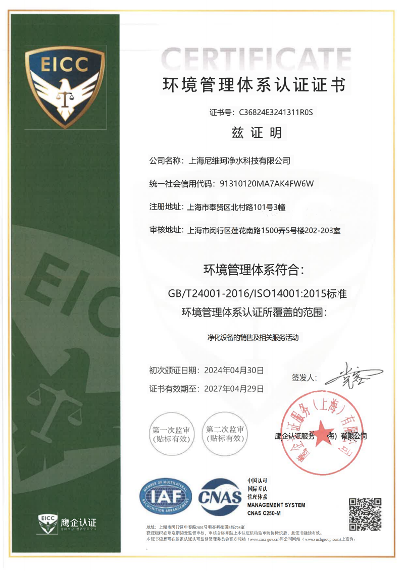 权威认证升级,尼维珂净水再获“三大管理体系”认证!